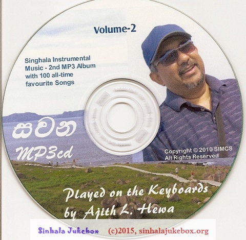 We are proud to feature these MP3 instrumentals by Mr. Ajith L. Hewa of popular songs, played on the keyboards by himself. Ajith is a Chemical Technologist by profession who is working in Canada for over 20 years. Being a music lover since his childhood, he has been constantly in touch with Sinhala Music & Sri Lankan Arts & Culture during all these years. In 1995 he and his family pioneered one of the first Sri Lankan Websites (Paradise) appeared in the cyberspace with a wealth of information such as, lyrics & chords for many Sinhala Songs, complete chronology of Sinhala Cinema, Tele-drama, and Sri Lankan Recipes etc spreading over few hundred pages.
