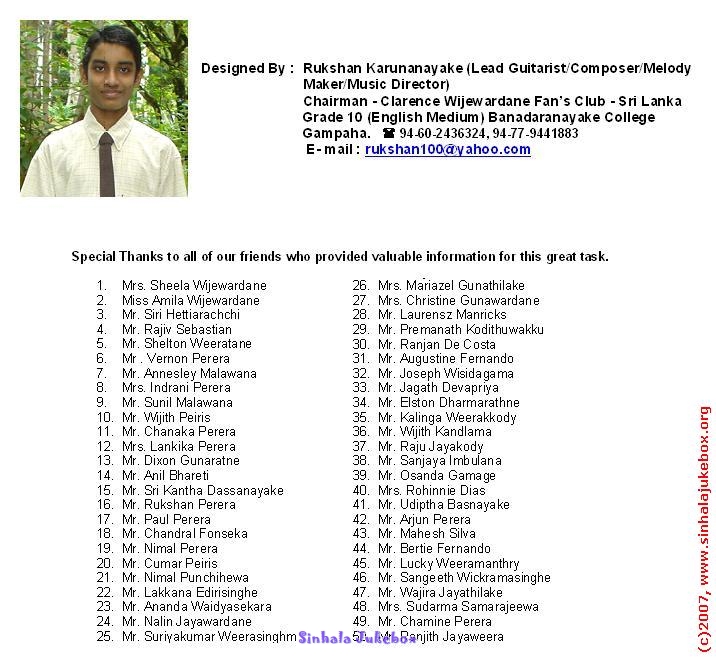 ©2000-2014, Sinhala Jukebox - A Jukebox of Songs from Sri Lanka.