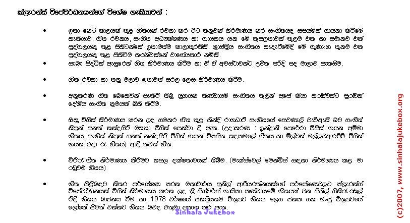 Let us know if you'd like your work to be listed in Sinhala Jukebox! Write to webmaster.