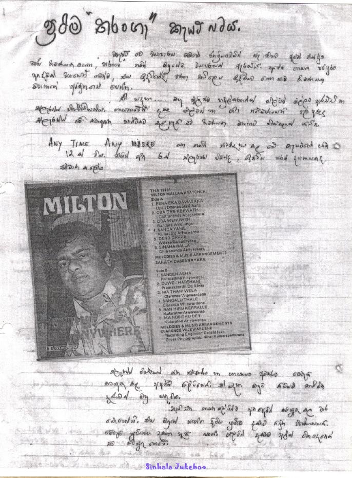 This is a service provided for Sri Lankan Music Fans for on-line listening only. Unauthorized uses of any kind, including