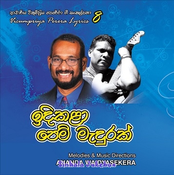 The 8th sinhala lyrical composition album of Vicumpriya Perera with 16 original songs, "Indikalaa Pem Medurak" was released in 2015. All tunes for the songs are composed by Ananda Waidasekera. The album features renowned and popular vocalists Devananda Waidyasekera, Chadrakumar Kandanarachchi, Walter Fernando, Thyaga N Edward, Athula Sri Gamage, Ajith Ariyarathna, Nalin Jayawardena, Nimanthi Chamodini, Srilal Amarajeeva Fonseka and Praneeth Shiwanka Perera. One song featured in the album, "Kulageyin Kulageyata" is written with Bhadraji Mahinda Jayatilaka. CD Cover design by Janaka Malnuthurama. Recorded at the studio of Ananda Waidyasekera, Gampaha, Sri Lanka and the CD production is by Lanka Heritage, LLC.