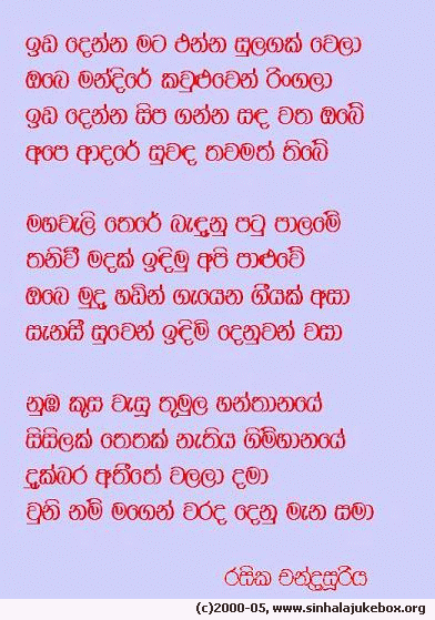 ©2000-2014, Sinhala Jukebox - A Jukebox of Songs from Sri Lanka.