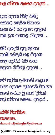 ©2000-2014, Sinhala Jukebox - A Jukebox of Songs from Sri Lanka.