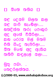 ©2000-2014, Sinhala Jukebox - A Jukebox of Songs from Sri Lanka.