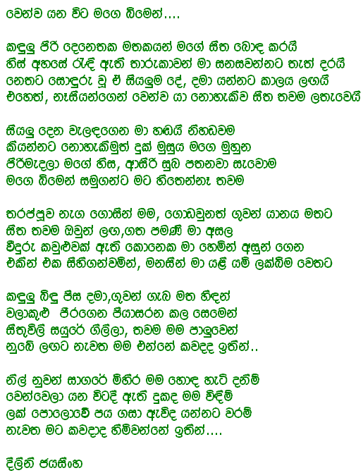 You are hereby invited to submit "Geetha Katha" for possible publication in this page. We reserve the rights to choose what will be presented, yet submitter is responsible for the content and not the page maintainers. We welcome all forms of creative work including but not limited to short stories, jokes, poems, and satire either in Sinhala and/or English.