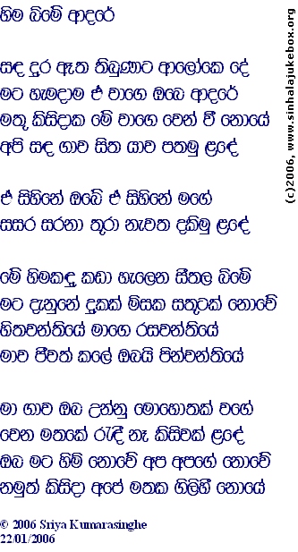 ©2000-2014, Sinhala Jukebox - A Jukebox of Songs from Sri Lanka.