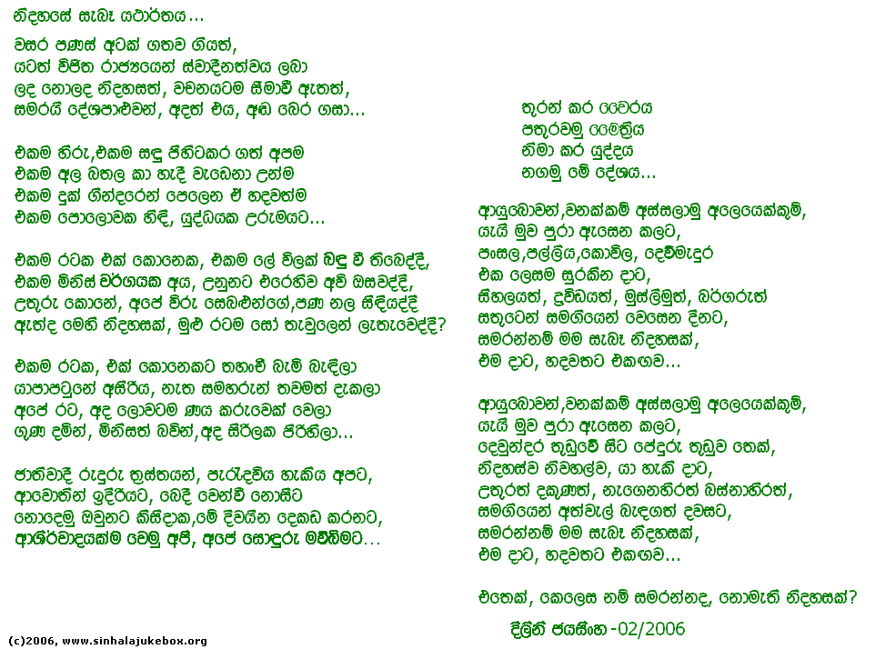 ©2000-2014, Sinhala Jukebox - A Jukebox of Songs from Sri Lanka.