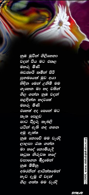 You are hereby invited to submit "Geetha Katha" for possible publication in this page. We reserve the rights to choose what will be presented, yet submitter is responsible for the content and not the page maintainers. We welcome all forms of creative work including but not limited to short stories, jokes, poems, and satire either in Sinhala and/or English.